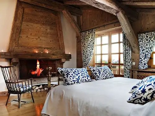 Debido a la climatología, las chimeneas están siempre presentes, así como las pieles que podemos encontrarlas tanto en dormitorios como salones, e incluso como tapicería de algún auxiliar. Gran recurso ya que en invierno ofrecen calor extra y se pueden quitar en verano aligerando así la decoración.