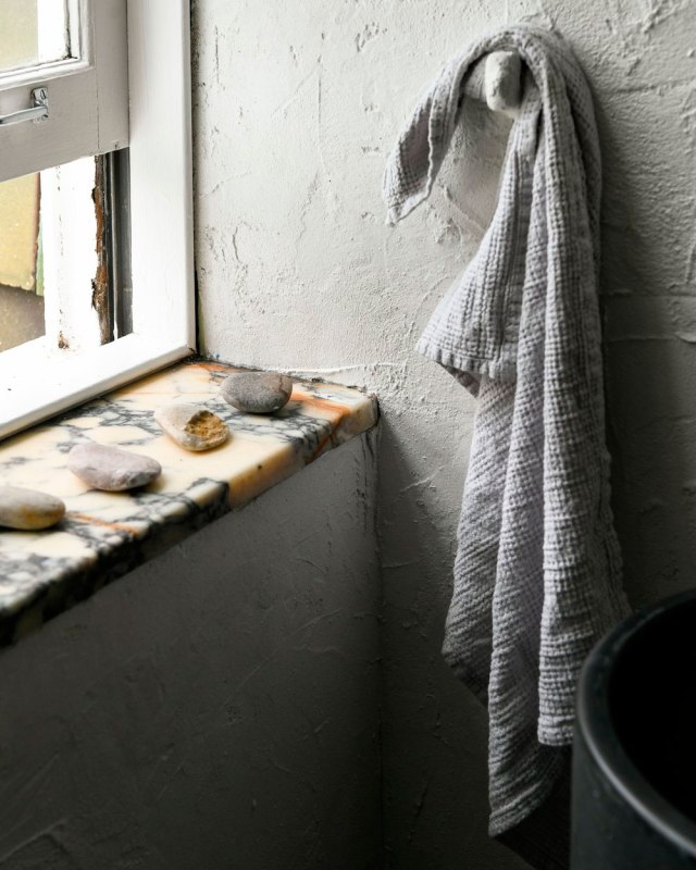 En este nuevo espacio carente de color, lo que llama la atención es el mobiliario, las texturas y la creación de rincones cuanto menos singulares. Me encanta la mesa camilla con la silla tipo Thonet del dormitorio principal, o el espacio bajo la escalera donde la interiorista ha creado un lugar de refugio que simula una pequeña casita, para su hija. También el precioso lavabo de pedestal negro del cuarto de baño, es de Noodco, y cómo se han revestido las paredes tapando el azulejo con un micro cemento de Surecrete Design que le otorga textura. El comedor es otra de mis zonas favoritas, mesa y sillas de Eneby Home, así como el banco tapizado con tela Bouclé de la entrada, de Crate & Barrel.