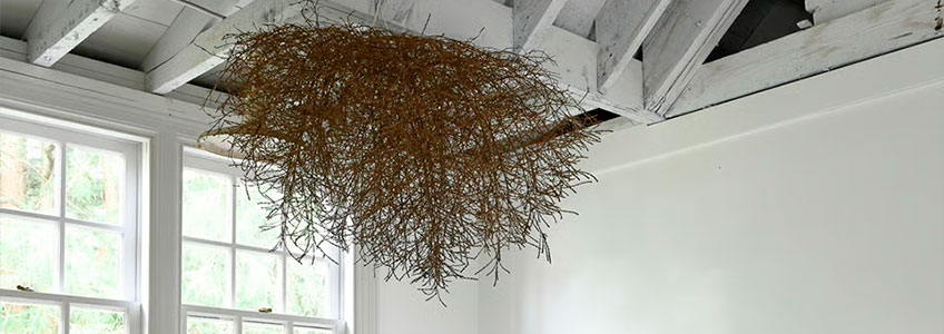 Para unificar todo el conjunto, la interiorista pintó las paredes, el techo y las molduras en Blanco Natural de la firma Behr, dándole ligereza al espacio. Para vestir el suelo de las escaleras se le ocurrió comprar alfombras de sisal y graparlas al suelo, una forma original y más económica que hacer una moqueta a medida.