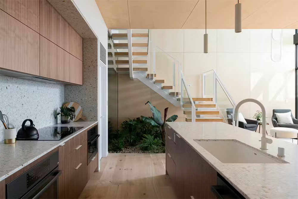 Lo interesante de esta vivienda es que consigue equilibrar varios factores que no siempre van de la mano: una imagen potente, una distribución funcional y una estrategia sostenible bien integrada. No hay elementos superfluos ni gestos gratuitos. Cada decisión formal parece tener una justificación práctica.