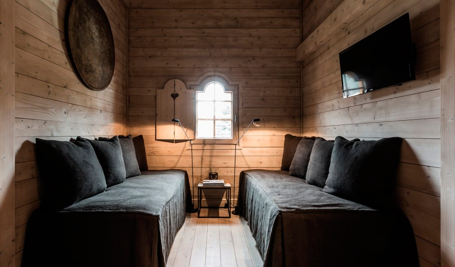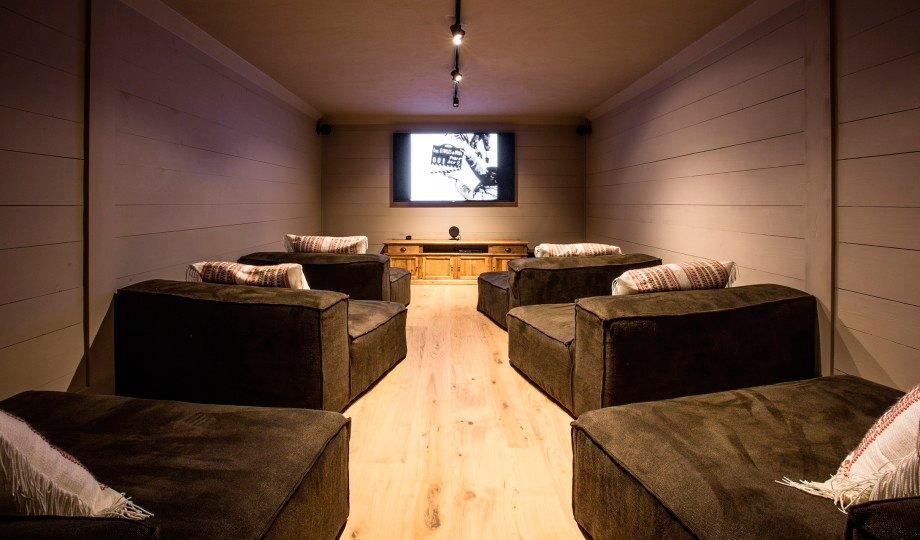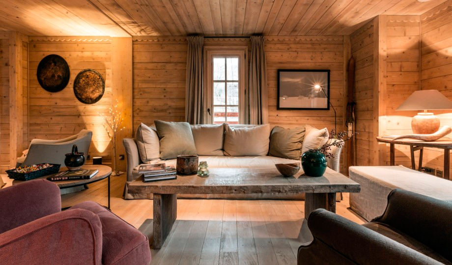 El espacio Bang & Olufsen, elegante donde los haya, mirad cómo están colocados los altavoces en la trasera del sofá, parecen piezas geométricas de cerámica, el diseño es espectacular.