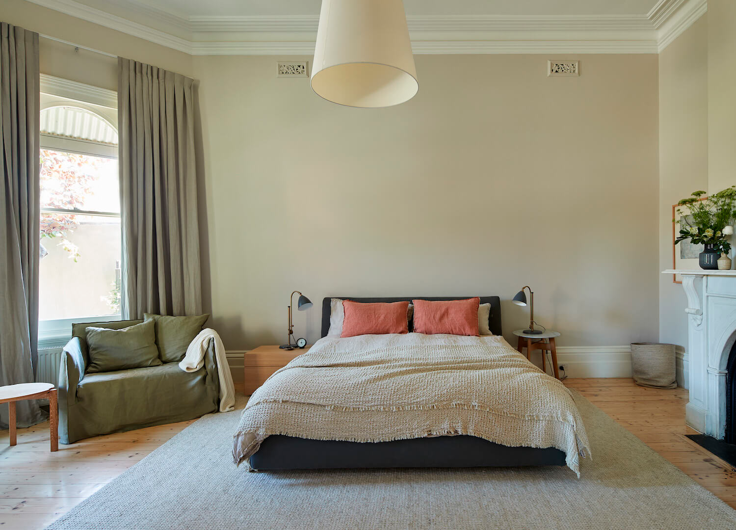 Una habitación infantil diferente, sobre todo por el papel pintado floral de KA Internacional, es espectacular (pero tendréis que ir a verlo para comprobarlo, mi foto deja mucho que desear). Es una propuesta de Sara Lago y Noelia Diego, del estudio de interiorismo Once Lunas.