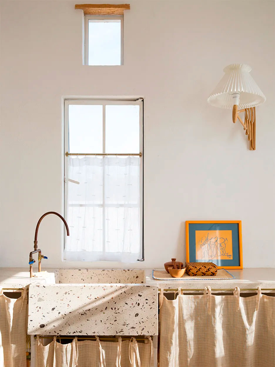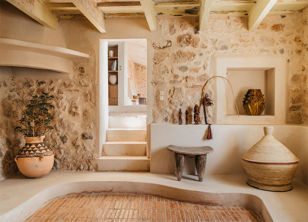 La casa está encaramada en lo alto de una ladera, sobre el encantador pueblo de Deià, con unas maravillosas vistas al mar. Una vivienda con historia entre sus muros y un presente renovado que mezcla sensibilidad nórdica, mediterránea y artesanía local.