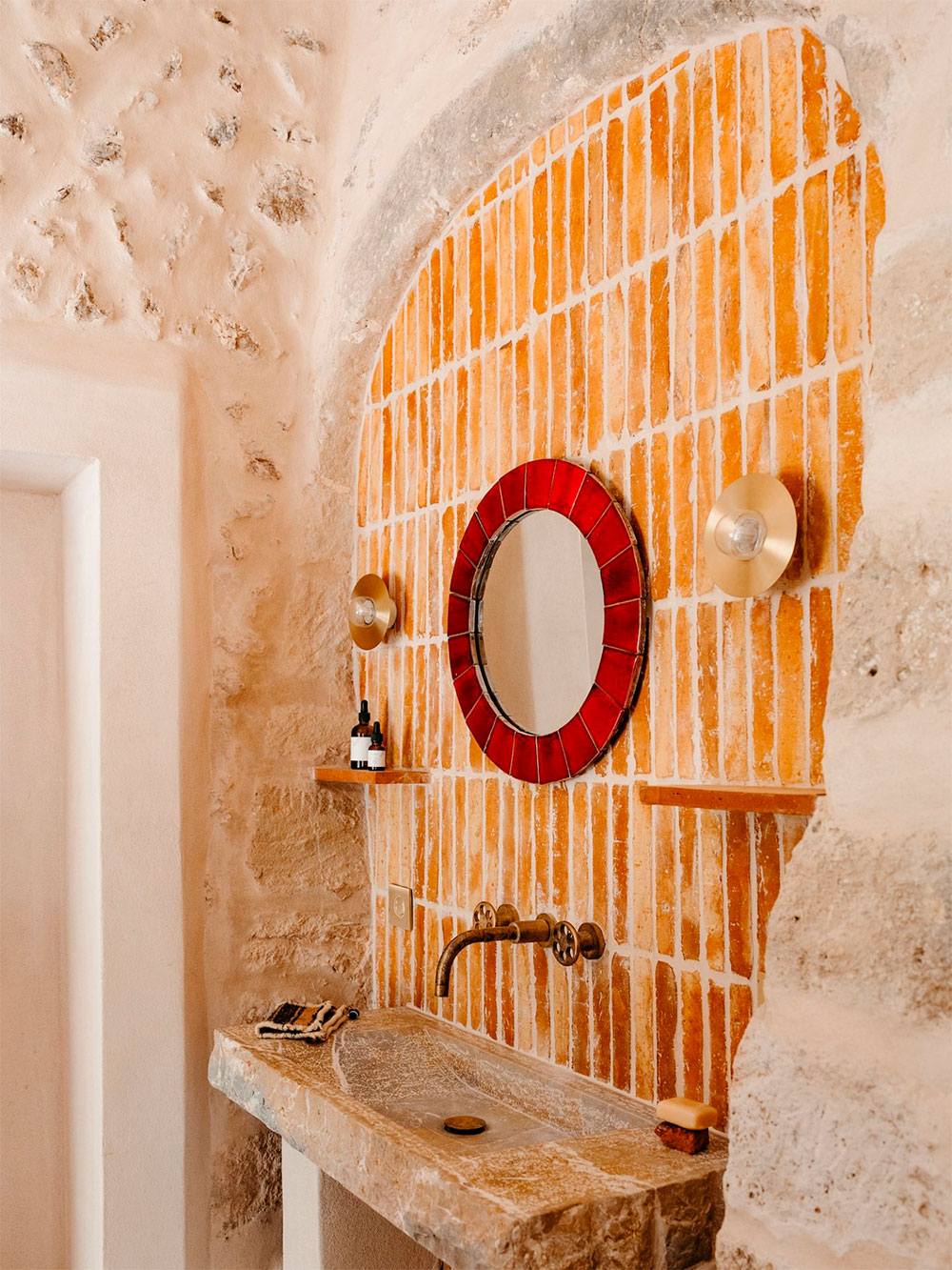 Artesanos mallorquines crearon todos los elementos claves de esta renovación, desde las balaustradas metálicas forjadas por el artesano local Toni Calafell hasta las bañeras y lavabos artesanales de piedra local de Binissalem, obra del maestro artesano Juan Camposol. Los productos empleados forman parte de una “paleta actualizada” de los materiales tradicionales de Mallorca: piedra local, cal y elementos naturales.