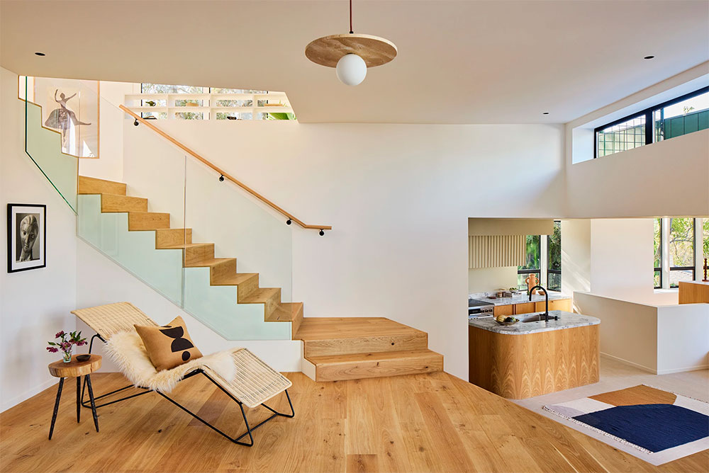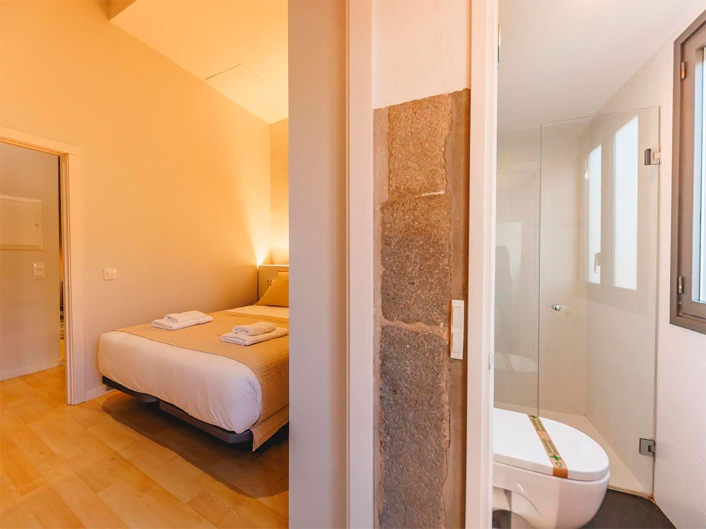 En los años 70 se hizo una ampliación “moderna” que resultó en un edificio poco coherente con el entorno. Este fue el punto de partida de la reforma: reorientar, dar luz, adaptarse al terreno empinado, rescatar materiales y crear espacios fluidos.