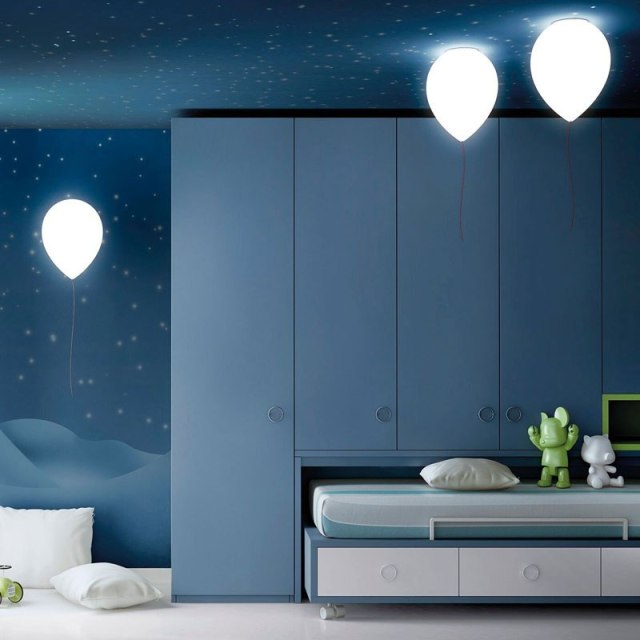 La lámpara o el plafón Balloon de Estiluz, me parecen perfectos para habitaciones infantiles por su divertido diseño que simula un globo suspendido con su bonito cordón rojo bajo la luz (aunque el color del cordón es personalizable).