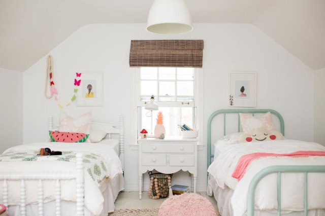 - Colores vivos y alegres: tonos pastel combinados con acentos saturados — verdes, rosas, amarillos, azul turquesa… Destellos de color por doquier en cojines, muebles, lámparas, paredes…