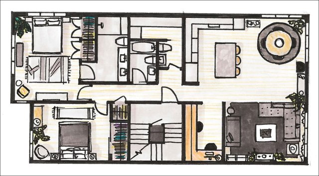 - Podemos elegir una base neutra o suave para paredes o suelos: blanco roto, beige claro o gris muy suave y, sobre esa base, añadiremos piezas de color intensas (cojines, alfombras, lámparas, espejos, cuadros,…)