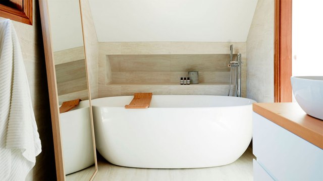 La viguería ya existía, dándole carácter histórico en la zona más antigua, mientras que, en la nueva estas vigas se perciben como elementos modernos y por supuesto en toda la vivienda, la madera aporta calidez y riqueza natural a los espacios. Por otro lado, los colores más apagados como los grises, los verdes oscuros o los negros, compensan el colorido jardín.