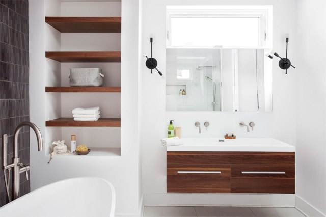 La casa está situada en Montreal, Canadá. Sufrió una remodelación completa ya que su antiguo diseño la hacía poco práctica al estar muy compartimentada (muchas habitaciones pequeñas e ineficientes). El cliente pidió añadir un tercer piso para albergar el dormitorio principal con el baño en suite. El paño del cabecero se decidió pintar en negro para crear dramatismo a la vez que contraste con la cama de teca y la lámpara de plata martillada. Para el baño se eligieron azulejos de cerámica que agregan textura al espacio. El resto se dejo en un blanco puro, de esta manera y aun existiendo tantos acentos en color negro, lo que predomina es la sensación de espacio y luz.