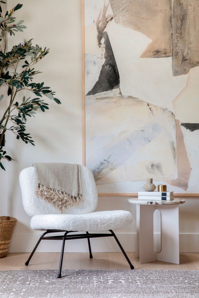 Tanto en la salita de estar (a la izquierda de la entrada) como en el salón (a la derecha de la misma), se perciben los elementos arquitectónicos originales de la vivienda que han sido respectados en la restauración, como las molduras, la chimenea, la gran altura del techo o los grandes ventanales. A través del salón se puede apreciar cómo asoma la cocina, a la que sí se sometió a una reforma integral.