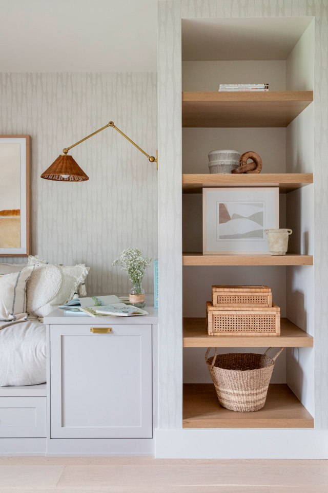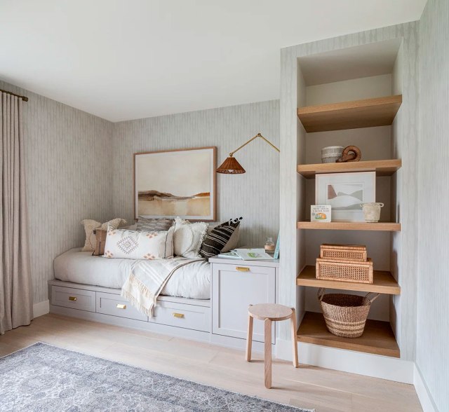 A continuación, una habitación antes inutilizada, se ha convertido en un osado vestidor color terracota. Son todo muebles adaptados de IKEA. Le sigue la habitación de invitados donde el protagonismo recae en el papel mural de la pared de Isidore Leroy.