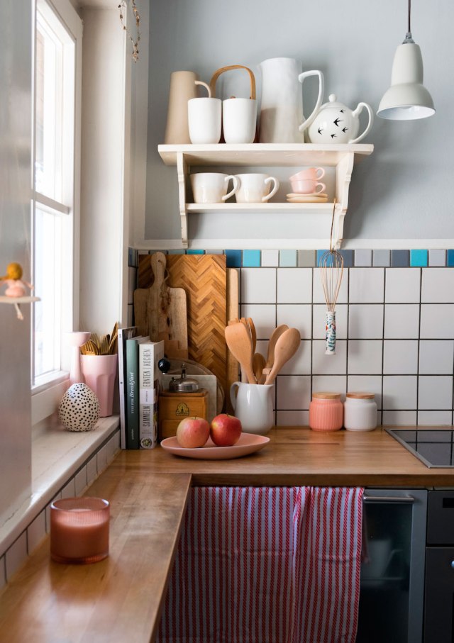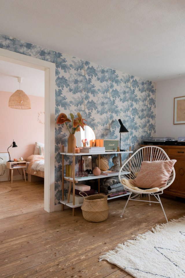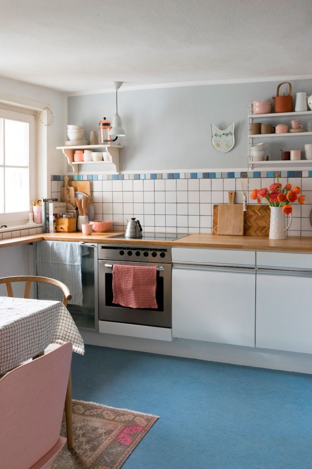 No es el tipo de casas que suelo poner en el blog, pero parece que encuentro reflejado mi estado de ánimo entre estas paredes de estilo tan «naif». Y es que últimamente siento estar un poco en las nubes, me cuesta concentrarme con el bullicio exterior (supongo que entendéis a qué me refiero), llevo diez días enferma y eso no ayuda (no, no es Covid, pero la comedura de cabeza no te la quita nadie). En fin, que al ver esta vivienda, me trajo buenas vibraciones y aunque probablemente no la elegiría para vivir, hay muchos elementos de ella que me gustan. Me entra la risa sólo pensar en el heavy de mi marido viviendo entre paredes rositas y azul «bebé», creo que para él sería motivo de divorcio ;-)