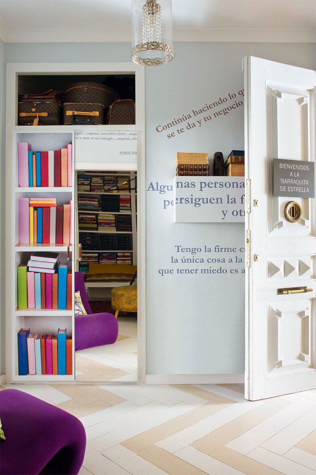 También se utiliza el arte como elemento de contraste, como la obra que reposa en el suelo, de la artista brasileña Isabelle Tuchband, en tonos fucsias y amarillo que rompe que con el blanco que impera a su alrededor. Junto al cuadro, una butaca recuperada del holandés Piet Hein Eek.