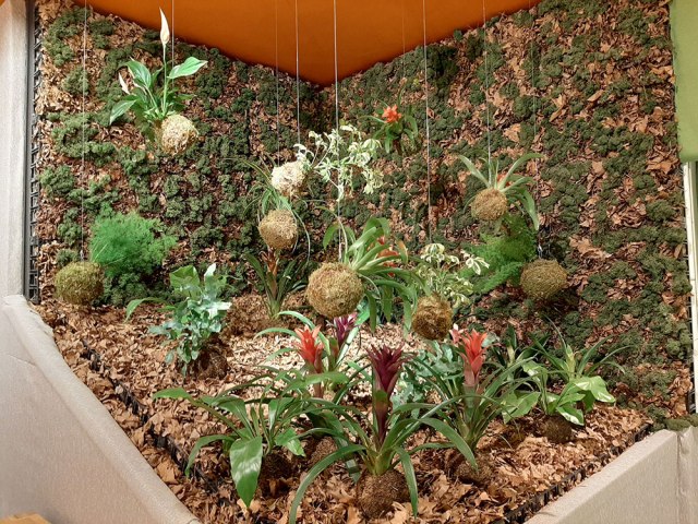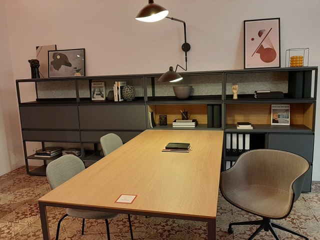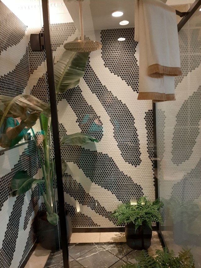 Es una pena que no se aprecie bien en las fotos, pero muchas de las cosas interesantes son los revestimientos como en el espacio GEBERIT cuyas paredes son de neopreno azul eléctrico, o todas las piezas artesanales que recubren el espacio BATHCO (ratán, mármol, cerámica, ladrillo), también el microcemento que reviste el suelo y paredes del apartamento «Vitamina Home», o la trasera del office del espacio BC3 Cocinas que realmente es una moqueta pegada a la pared, por poner algunos ejemplos.