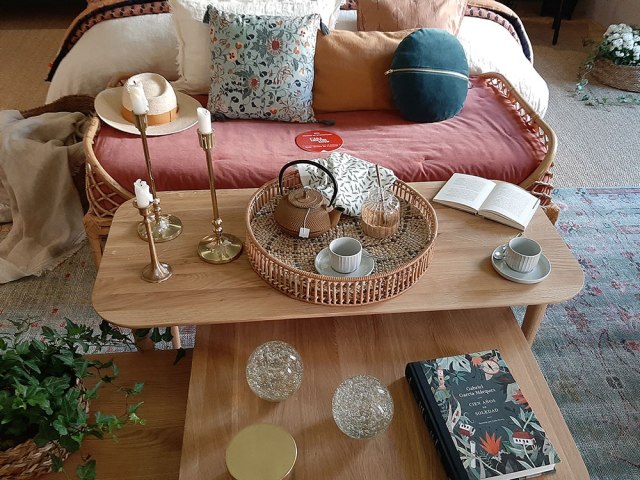 Y llegamos a mi espacio favorito, el de Carla también. Ahí dedujimos que somos más bien clásicas. De buena gana nos hubiéramos quedado a vivir en el maravilloso ático decorado por El Corte Inglés, me sorprendió muy gratamente. Se entraba a un gran salón, donde las simetrías transmitían paz. Enfrente un dormitorio forrado con cuarterones blancos y papel pintado, sencillo y muy romántico, lo completaban piezas de madera y ratán. Pasado el salón un gran comedor decorado al mínimo detalle (me he guardado alguna foto más para ponerla en Instagram, porque no tiene desperdicio) y de ahí se pasaba a una completa, pero sencilla cocina, con zona de lavado de Deulonder y a otro comedor tipo office con una mesa ovalda, similar a la Tulip y bancos corridos. El apartamento disponía de dos terrazas perfectamente pertrechadas, una como zona de comedor y la otra como zona de estar con unas vistas envidiables al Barrio de Salamanca de Madrid. En fin, lo más de lo más.