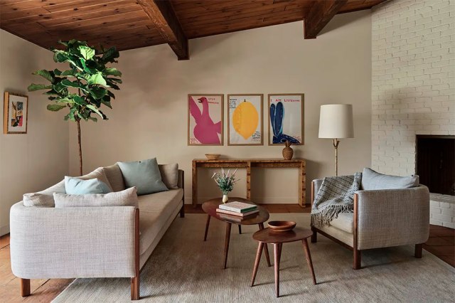 Tras las grandes puertas de granero originales, encontramos un amplio y acogedor espacio. A penas tiene 83 metros cuadrados pero, gracias a un diseño acertado, parece aún más grande. Se utilizaron elementos existentes para darle ese aire de granja que buscaban, como las puertas mencionadas, las vigas vistas o el techo inclinado.