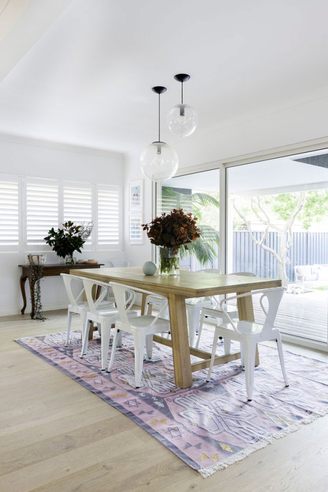 Los acentos de rosa tienen su porqué, convive con tres hombres, su marido y sus dos hijos, así que había que poner el toque femenino de alguna manera. La realidad es que lo ha hecho tan sutil que apenas se nota. A mí particularmente me ha enamorado la alfombra del comedor.