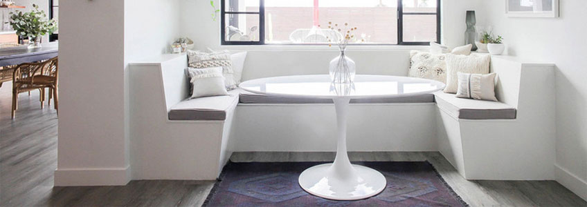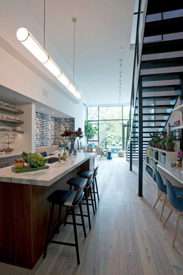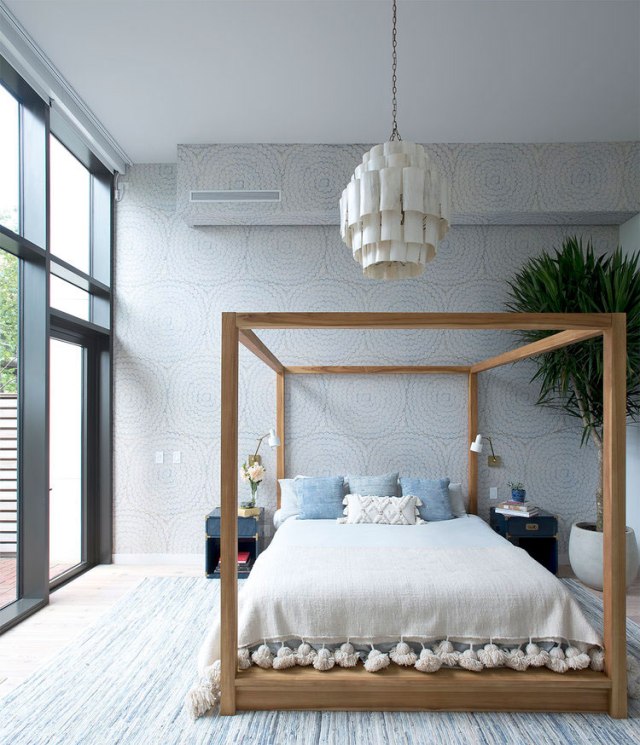 La casa que os traigo hoy respira época estival, claro que está en San Diego (California) y por allí el tiempo es de lo más agradecido, incluso en invierno (palabrita, que yo he estado). Se trata de la vivienda de la estilista y diseñadora Abbie Naber, una casa donde interior y exterior se funden para el disfrute durante todo el año. Lo que más me gusta de esta vivienda es su mezcla de estilos y texturas, la personalidad que derrocha, algo que sólo se puede conseguir cuando eres fiel a ti mismo, cuando de un viaje surge una idea, o un mural de pared te recuerda al océano y lo pones en lugar de un cuadro porque es eso precisamente lo que buscas, cuando no te guías por un sólo estilo y decides que unas sillas de bambú quedan perfectas al lado de otras de estilo escandinavo, cuando no te asusta sacar muebles de contexto y utilizar un aparador mid-century como mueble de lavabo e incluso usar un precioso papel azul marino con rayas doradas en un cuarto infantil ¿Y por qué no? En eso radica la personalidad, en salirse de los estándares, si algo te inspira, te llama la atención o te transmite emociones, no lo dudes, eso es que esa pieza está hecha para ti.