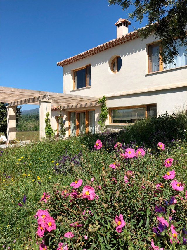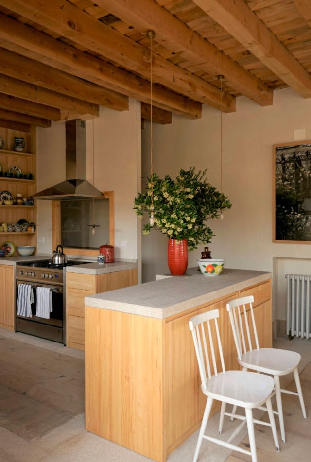 La casa sigue los patrones de la arquitectura de la zona, construida con materiales naturales, como las vigas de madera, los suelos de barro, madera o granito y las paredes en yeso. Como veis está decorada de forma rústica y tradicional, lo que la hace muy acogedora (casi que con el chéster del salón frente a la chimenea, ya me habían ganado), luego he visto la cocina de madera y el comedor con modelos de sillas diferentes, con divertidas telas de dibujos en colores geométricos, las vigas de madera y la lámpara de fibras ¿cómo no enamorarse? Los dormitorios son una mezcla de piezas antiguas, con otras más nuevas y frescas (como los cabeceros de bambú), confortables telas como el lino y el algodón, diría que en cualquiera de esas camas se debe dormir bien. Aunque si os cuento un secreto, allá donde vayamos siempre me toca la cama de matrimonio, mi amiga Ana y yo formamos un pack indivisible, nos conocemos desde la más tierna infancia y nuestra amistad es casi como si fuéramos familia (hermanas, primas,… da igual, porque no nos pueden separar :-)), así que siempre dormimos juntas, aunque no revueltas ;-).