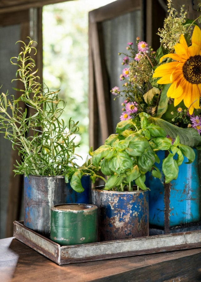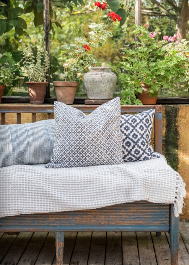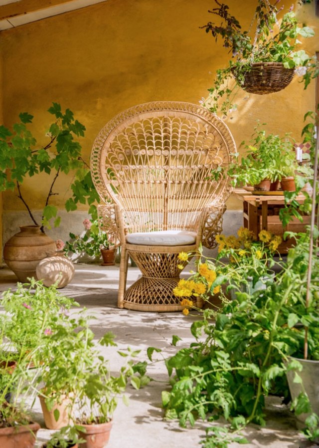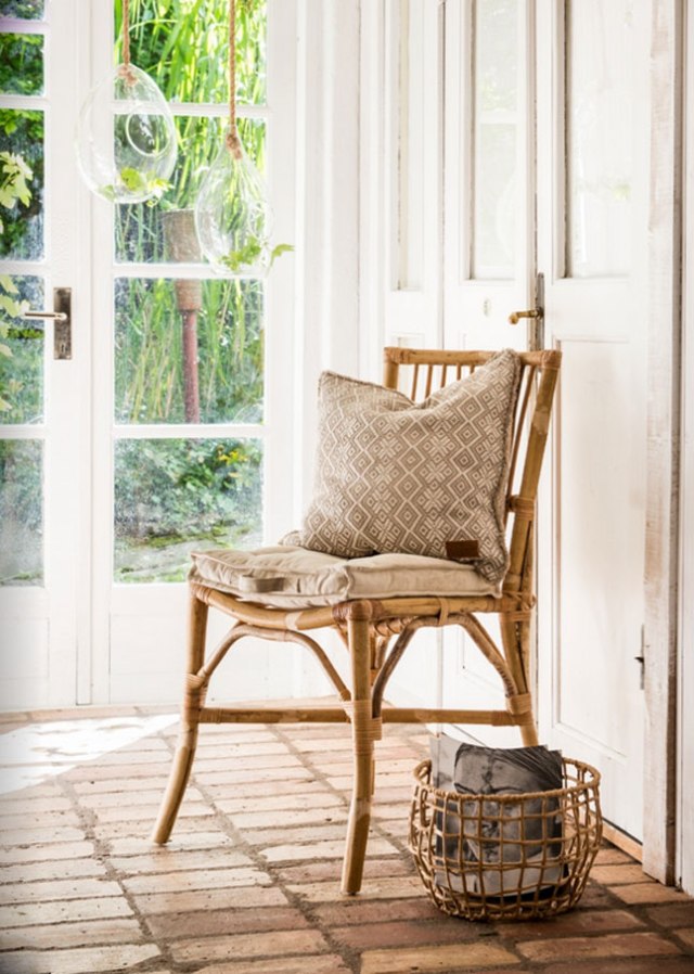 En cuanto a decoración, hay una sencilla mezcla entre lo industrial, lo vintage y lo rústico, muy acorde a la esencia de la vivienda. Mucho mobiliario en hierro que encuentra su réplica en las vigas, los cerramientos, las estufas,… Cierta osadía en el uso del color, pero sólo en puntos muy determinados, como el frente amarillo de la cocina (que puede verse incluso desde la planta superior), o el porcelánico imitación hidráulico del patio interior o invernadero. La parte rústica está representada por el mobiliario de cocina, todo en madera, o ciertas piezas en fibras naturales (como la lámpara del comedor), también en el cálido espacio destinado a despacho, realizado con una sencilla mesa de caballete y una butaca. En general la casa es un mix decorativo bien avenido donde cada pieza tiene un porqué y un para qué, sin que ninguna cobre más protagonismo que las otras.