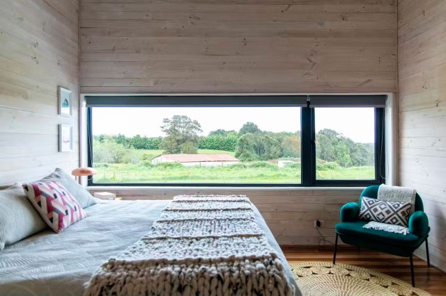 Aunque no lo parezca esta casa viene de ser un lugar frío y oscuro. La apertura de ventanas y la construcción de pasillos acristalados fue determinante para dejar entrar la luz y toda la naturaleza que rodeaba la vivienda. Incluso un pequeño anexo a ella (la casa de invitados) se unió a la matriz a través de un pasillo de cristal.