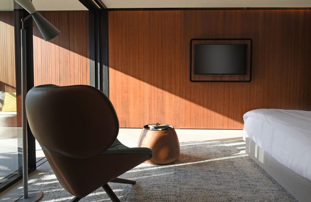 La viguería de los techos en la cocina y el comedor proporcionan un espacio acogedor y sencillo para comer, es una zona además donde gracias a sus grandes ventanales, se puede disfrutar de las vistas y la vegetación exterior mientras cocinas o comes, todo un lujo. En la cocina destacan sus brillantes encimeras de mármol, junto a detalles como la iluminación en bronce, en el comedor unas sillas Wishbone ponen el toque de diseño al igual que la magnífica Eames del rincón de lectura, en una casa donde mayoritariamente el diseño interior es sencillo y sin pretensiones.
