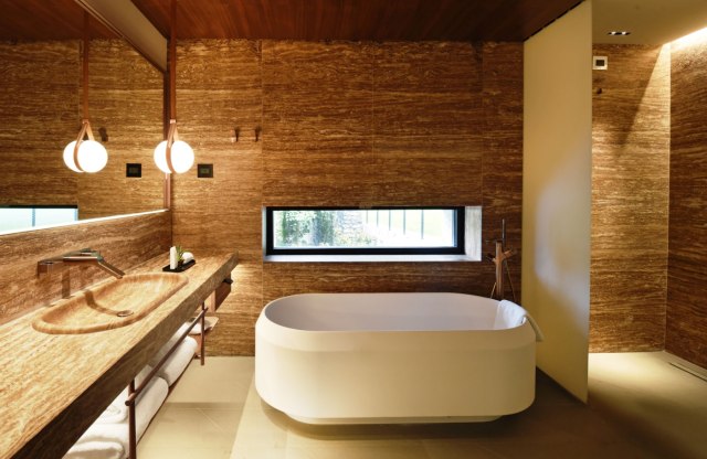 Otra de las bondades de esta casa es la cantidad de luz natural que se enfatiza gracias a sus paredes de piedra en blanco, a los altos techos, las maderas claras y los toques de vegetación que podemos encontrar en cada uno de los espacios de la casa. Ya sabéis, poned una planta un vuestras vidas :-)