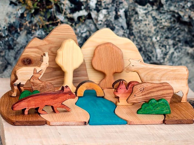 Sus juguetes son creaciones propias, todo es artesanal por lo que cada pieza es diferente porque así es la naturaleza, bella y caprichosa. Por supuesto todo es ecológico y sostenible. En su taller se mueven entre maderas de pino, nogal, sabina, roble o encina, todo un placer para los sentidos. Su inspiración y sus mejores críticos son sus propios hijos, aunque también tienen en cuenta otras metodologías punteras de grandes pedagogos como María Montessori, Waldorf, Heike Freire, entre otros.
