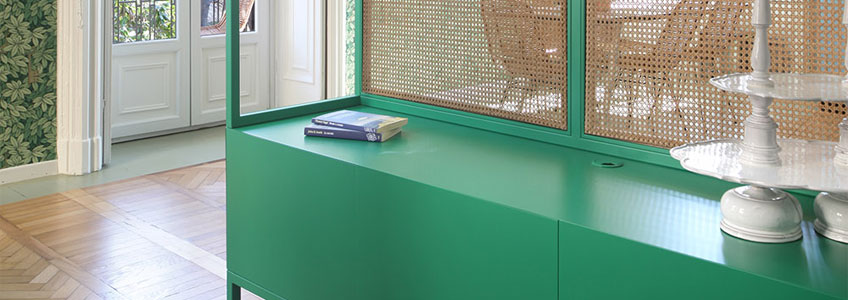 Como veis una vivienda atrevida, llena de color, su punto fuerte: el diseño. Y una pieza que me ha enamorado por encima de todo, el separador de ambiente-mueble de televisión que divide el comedor del cuarto de estar, ¿no os parece espectacular? A estas alturas de mi vida creo que me voy a tener que reconciliar con el color verde :-)