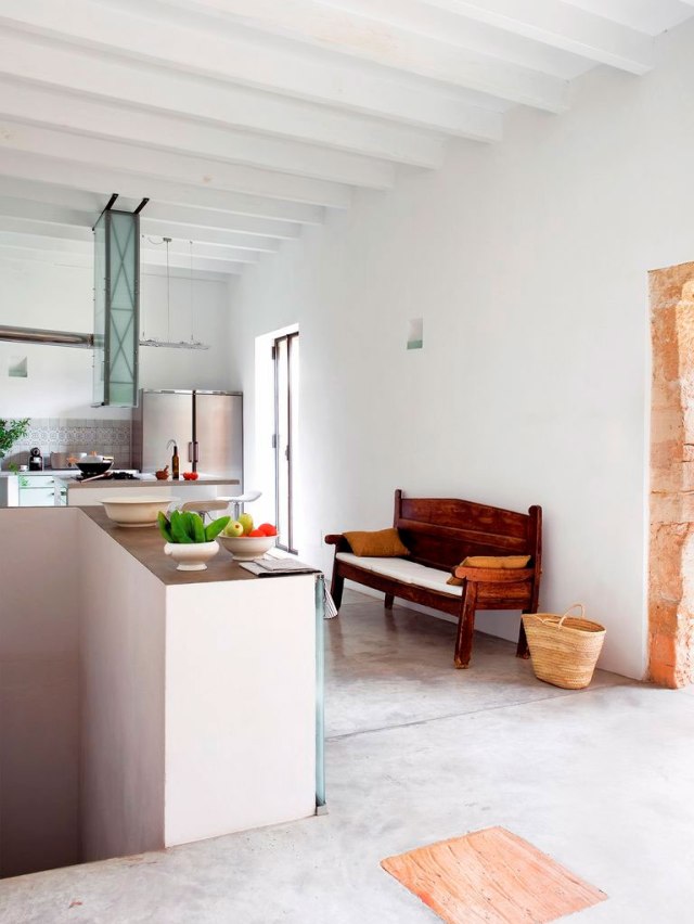La reforma fue un reto emocionante. Lo primero fue derribar tabiques y abrir los espacios para dejar que la luz fluyera libremente. La distribución se reinventó para crear un salón-cocina amplio, una habitación que se abre y cierra con una majestuosa puerta corredera, una pequeña oficina y un baño curvo lleno de encanto.