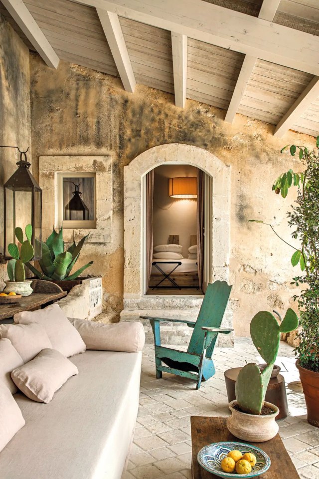 Esta maravilla se encuentra en Sicilia, en una finca fortificada rodeada de 27 hectáreas de puro paisaje mediterráneo. Para su tarea de rehabilitación se apoyó en la diseñadora Draga Obradovic y en el arquitecto Stefano Guidotti.