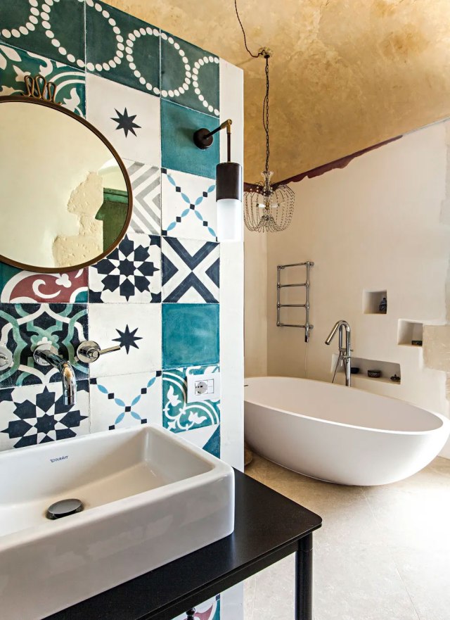 Muchos de los elementos que decoran la casa, tanto a nivel arquitectónico como decorativo, tienen procedencia marroquí. Los azulejos de los baños son un ejemplo, también los pavimentos que recorren parte de los suelos, o la sucesión de platos azul índigo que se descuelga por la pared del vestíbulo.