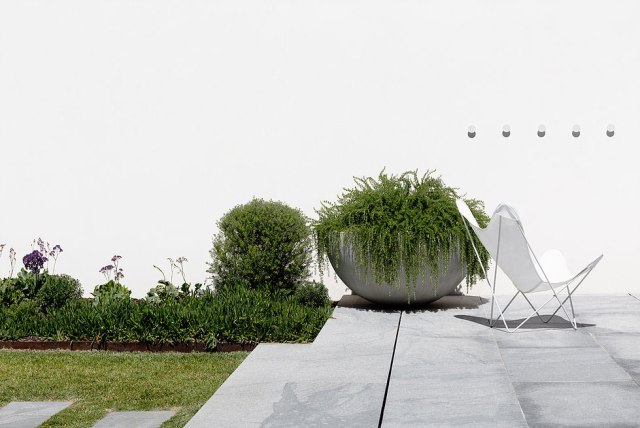 Es aquí, en el dormitorio principal, donde encontramos otra proyección de la cápsula de hierro, ya que se aprovechó el hueco del ascensor para introducir la naturaleza con otra intervención artística.