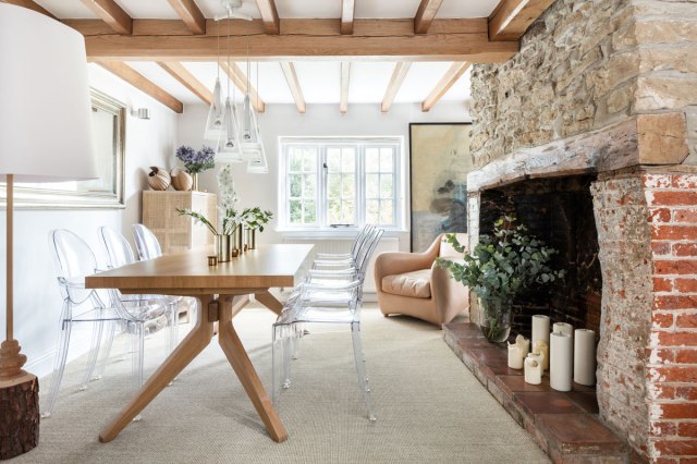 En el baño, el verde menta aporta frescura y refuerza la conexión con la naturaleza. Las ventanas originales se restauraron para conservar el carácter del edificio, mientras que el mobiliario combina piezas funcionales y atemporales, como el sofá Martina en beige de Kave Home o la mesa de centro de The Masie.