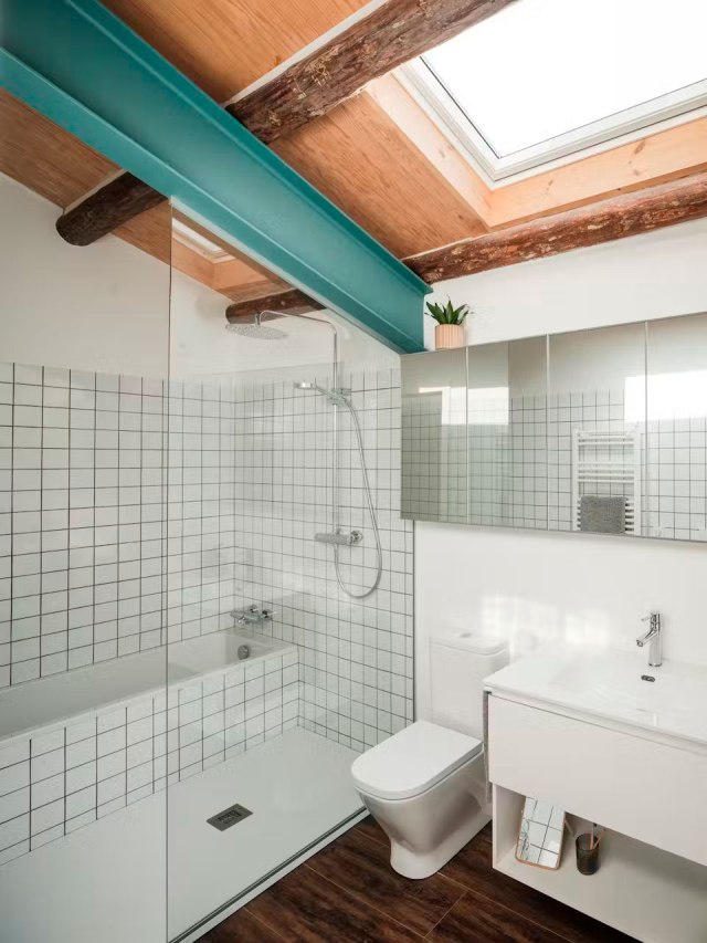 Como os decía al principio, es raro que todo lo que hay en una vivienda sea de tu agrado cien por cien. En este caso son los baños que, particularmente, no son de mi estilo (aunque sí salvaría la antigua madera utilizada como soporte del lavabo en el baño de la planta inferior).