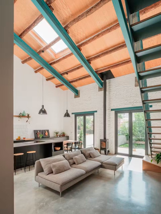 Encontrar una casa donde te gusten todos sus espacios es realmente difícil, a no ser que la hayas diseñado tú mismo. Y aunque siempre suele haber algo que queremos cambiar, los flechazos existen. Esto me ha pasado con la casa que os traigo hoy, no toda ella me convence, pero las vigas metálicas verdes azuladas y la escalera del mismo color, eran motivo para compartir :-) Pocas veces veo ideas tan originales, fáciles de ejecutar y que tengan tanto impacto visual. A ver qué opináis vosotros.