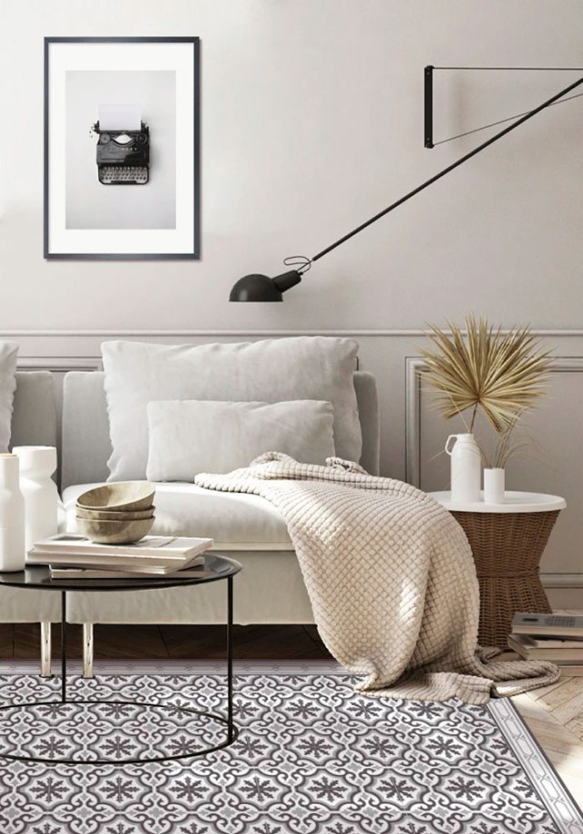 Es un lujo pensar que fácilmente podemos cambiar en una cocina los frentes de los armarios por ejemplo (los vinilos de Lokoloko son tan fuertes que se utilizan incluso en automoción, así que no penséis que no os durarían en la cocina), o el aspecto de las paredes haciendo parecer que tenemos un preciso mármol veteado en lugar de un azulejo del año de «Maricastaña». Decir adiós a un esperpéntico suelo pegando sencillamente encima losetas o rollos de vinilos, que después se podrán fregar incluso con lejía, sin siquiera perder el color. O incluso si no te apetece trabajar, extender directamente una alfombra vinílica de Fancyhaus, cuyo mantenimiento es el mimo y con propiedades antibacterianas, impermeables y antideslizantes. Estas alfombras, que sólo tienen dos milímetros de grosor, no interrumpen la apertura de las puertas pero a su vez, en suelos muy fríos aíslan y pueden usarse con calefacciones de suelo radiante.